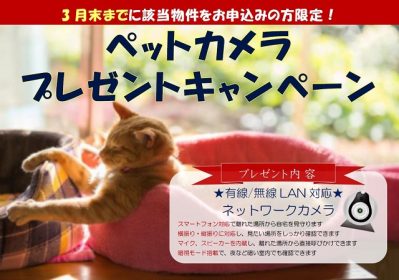 2017年2月20日 / 最終更新日 : 2017年6月28日 ブログ 【キャンペーン】2/15~3/31限定★ペットカメラプレゼント こんにちは。営業部の廣川です。 今週水曜日の2月22日(にゃんにゃんにゃん)は”ネコの日”だそうです。みなさん知ってましたか? さて、弊社の管理物件の中には、猫や犬などを飼うことができるペット […]